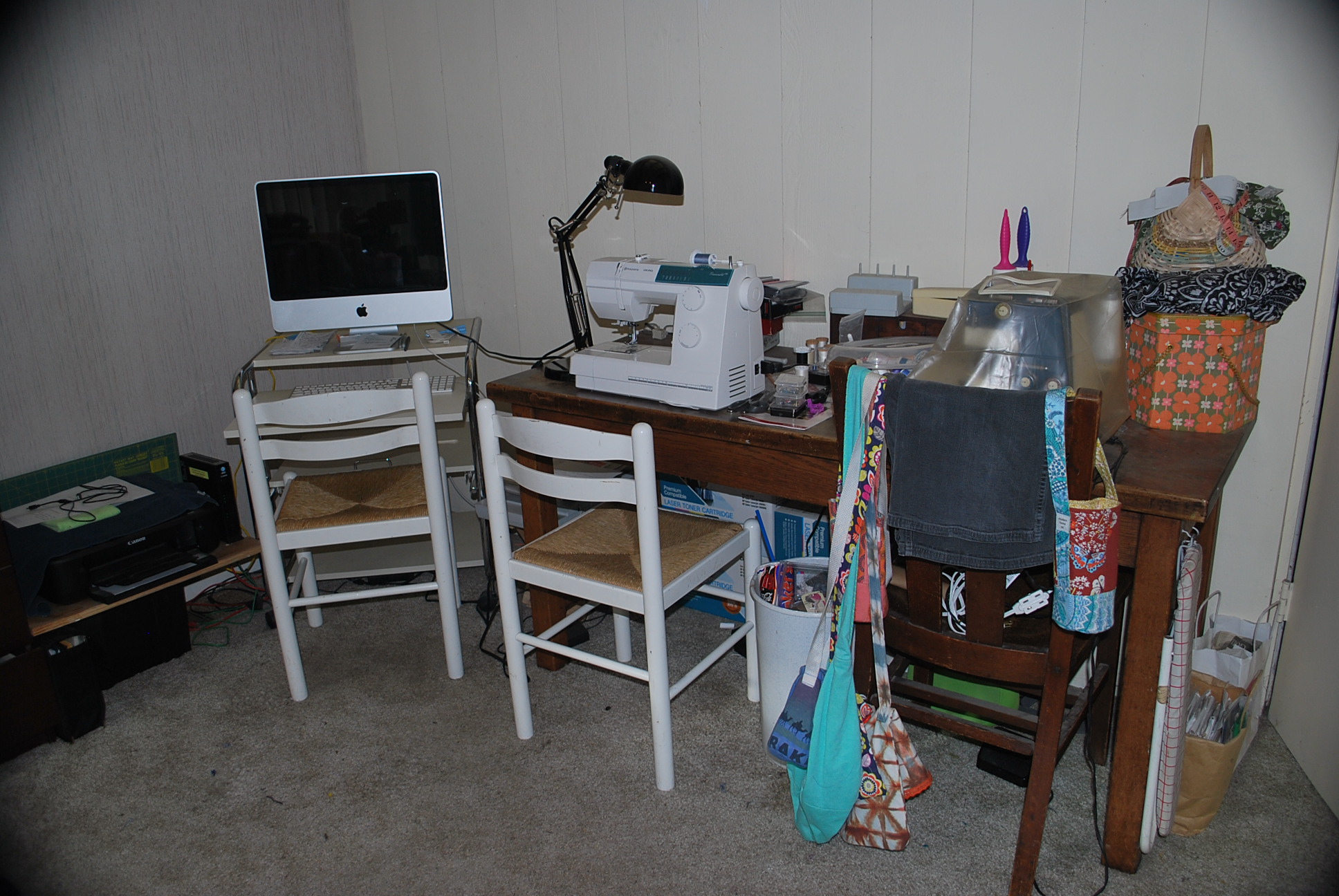 This is my sewing room. I consider myself fortunate that we have a spare room in our house that I can dedicate to sewing. (Well, the computer also is in there.) However, it is a mess. I have never made a priority to make it cute and uncluttered. I would rather spend my time sewing. DSC_0526But just so you know that my whole house doesn’t look like this, here’s a picture of my living room.DSC_0524