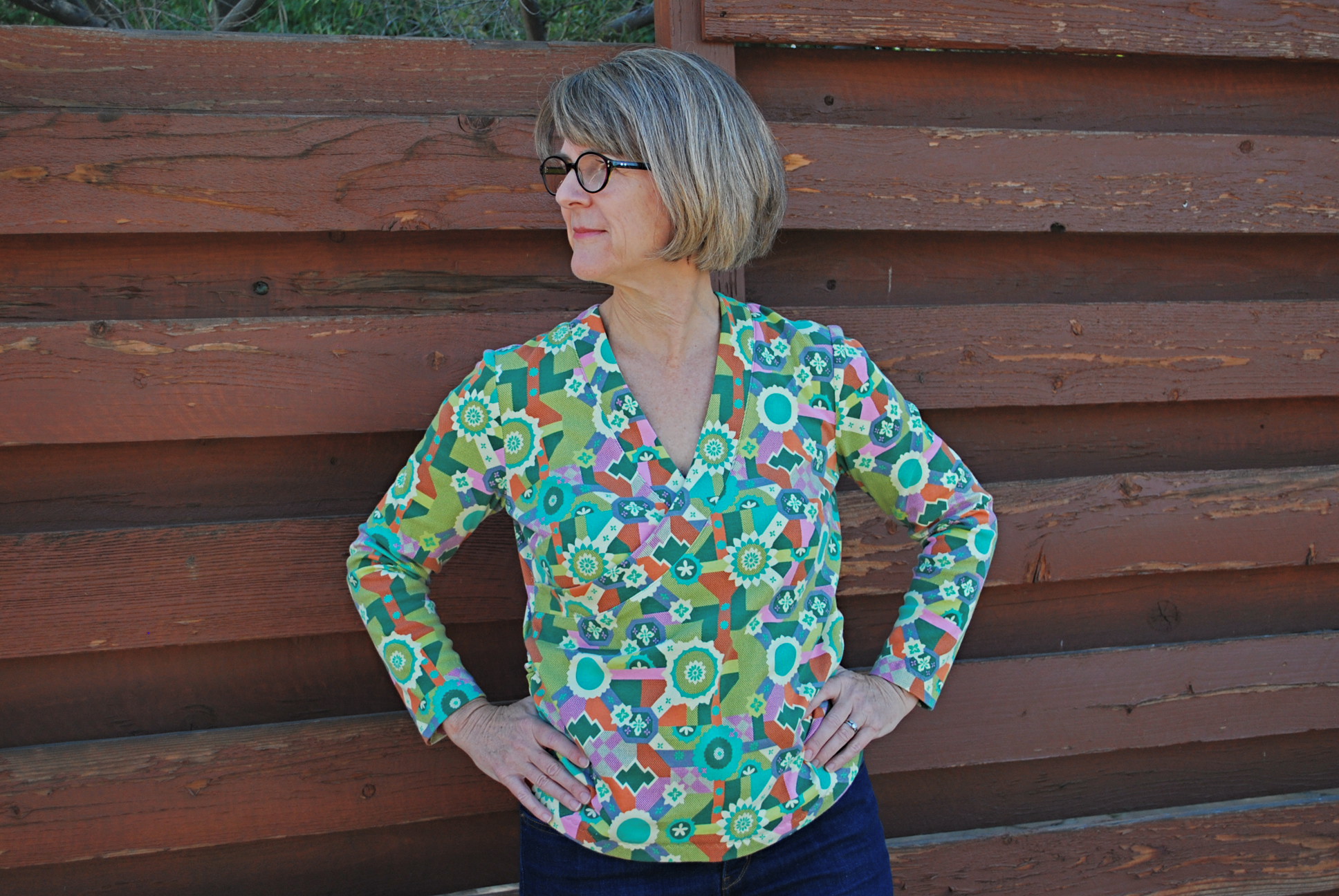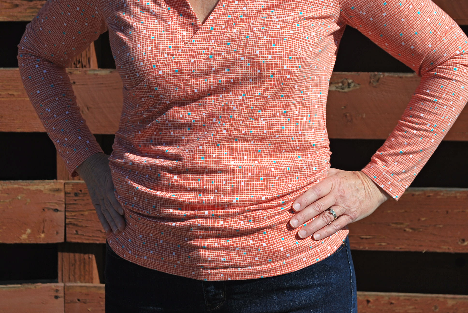 2. I shorten the body pattern piece by about 2 inches. I often shorten tops as I do not want them to end at my thighs, the widest part of me. I prefer tops to hit a few inches above my thighs.