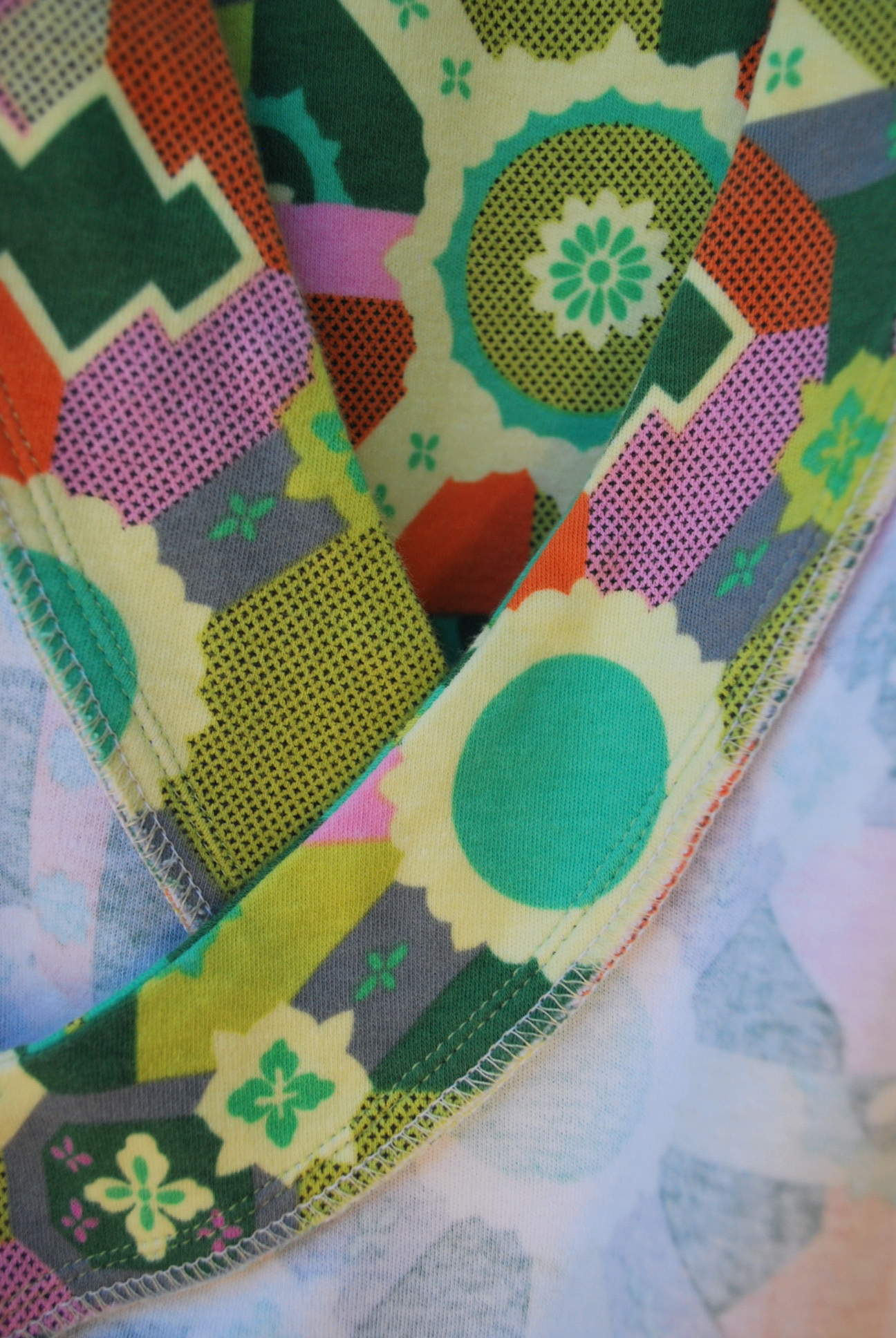 For the bottom band, I doubled the width of the pattern piece, folded it in half and sewed the edges together when it was sewn onto the body. I did this instead of a single layer band with a narrow 5/8″ hem as called for in the instructions.